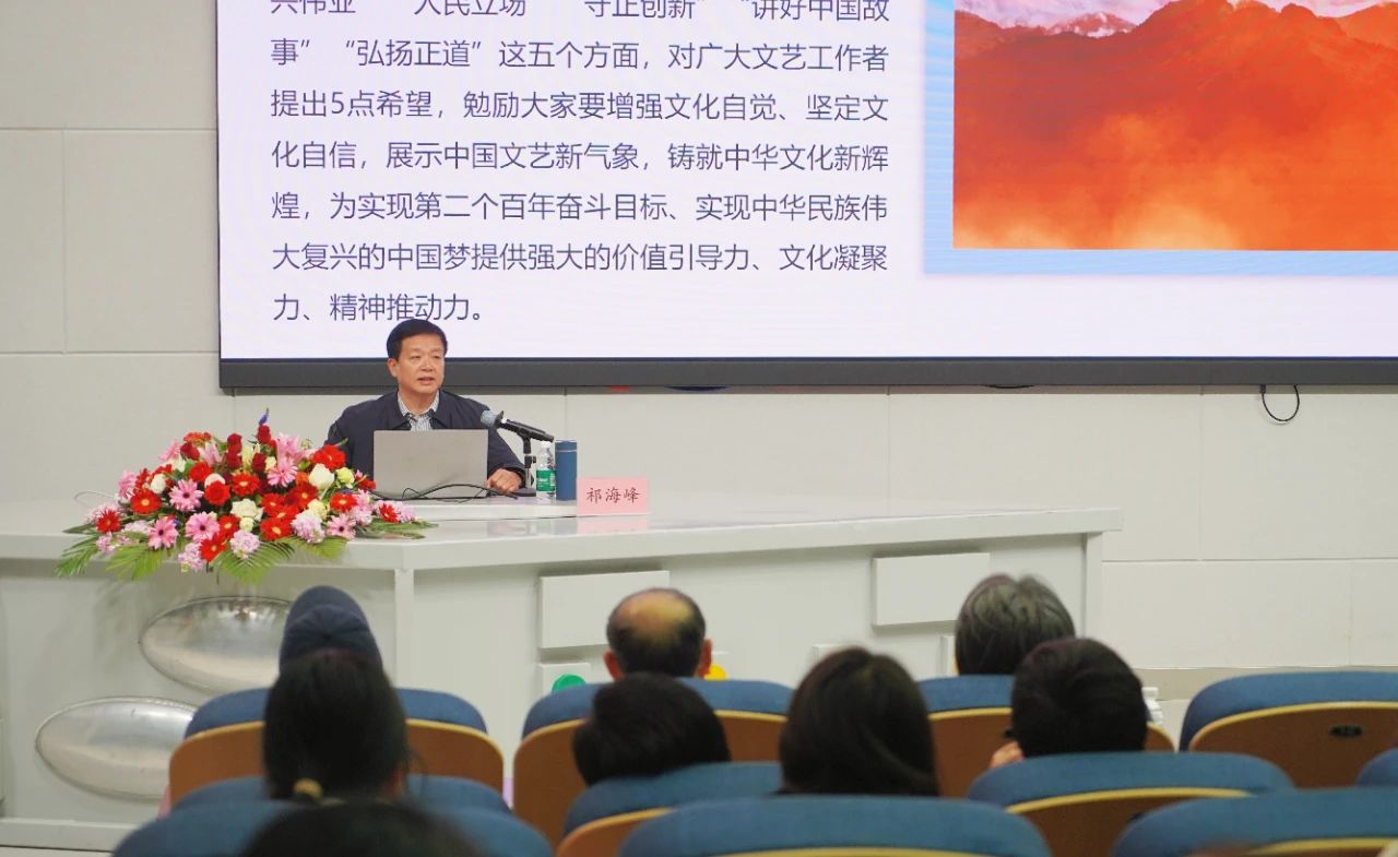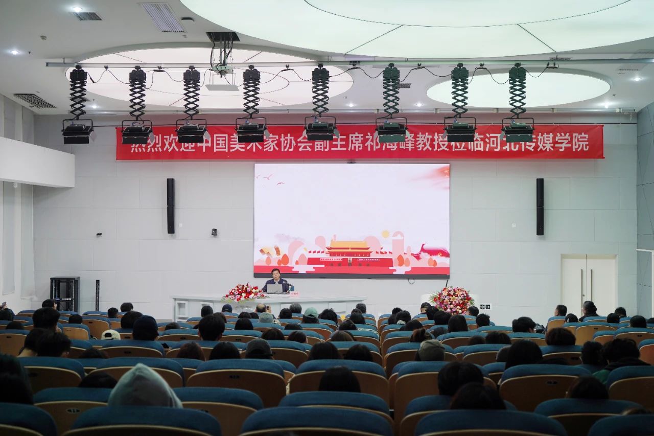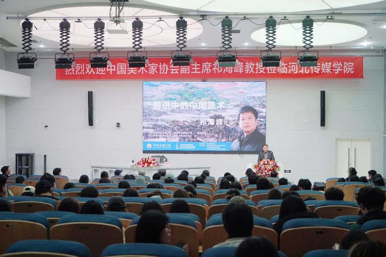 3月11日,中国美术家协会副主席、河北省文联副主席、河北省美术家协会主席祁海峰应邀走进河北传媒学院,以《前进中的中国美术》为题进行专题讲座。讲座由河北传媒学院院长李辰主持,河北省文联副主席、河北传媒学院校长李锦云出席相关活动。