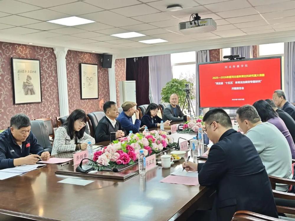 10月29日,由河北传媒学院马克思主义学院院长梁晓教授主持的河北省体育社科研究重大课题《河北省“十五五”体育法治规划专题研究》开题报告会在我校顺利召开。河北师范大学教授、博士生导师刘春燕任专家组组长,专家组成员有河北科技大学教授、硕士生导师冯海涛,河北太平洋世纪律师事务所主任、国家一级律师张焕明。河北传媒学院副校长李建平,科研处处长董孟怀、副处长王敏出席会议。