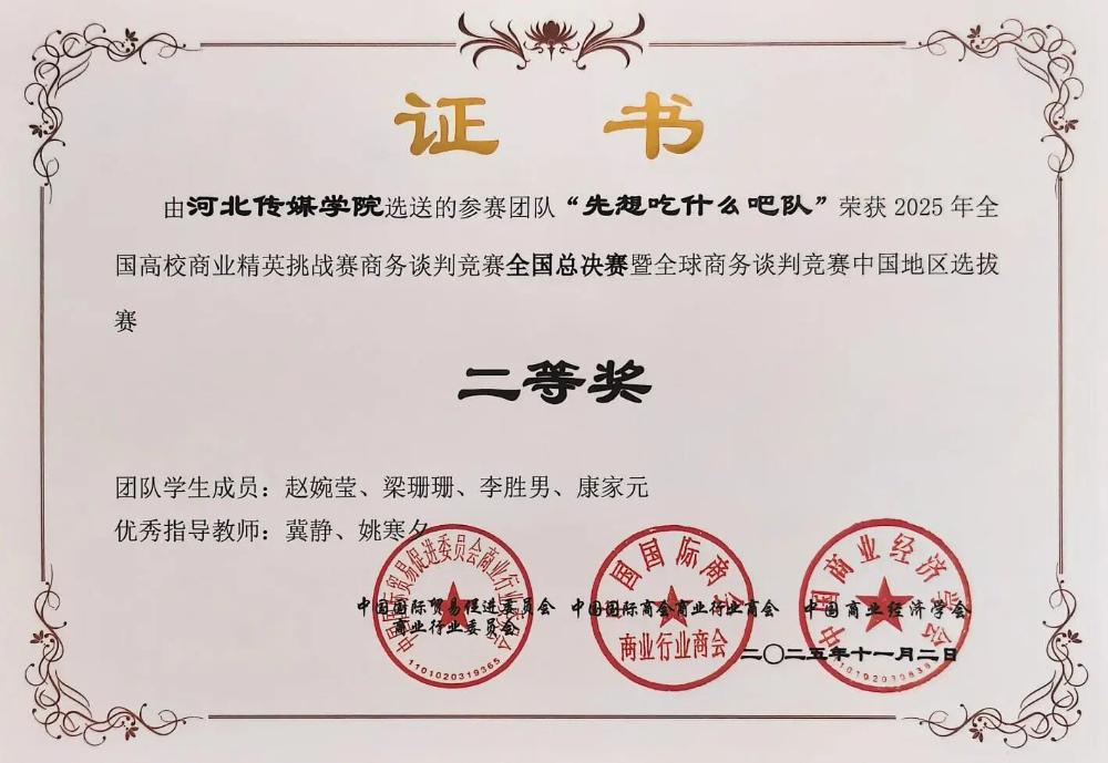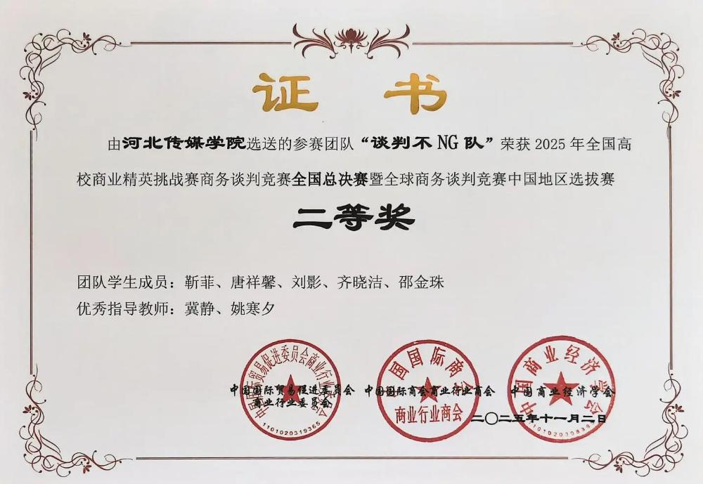 我校学生在2025全国高校商业精英挑战赛商务谈判竞赛中获得佳绩
